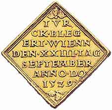 Velmi vzácná mince s atraktivním portrétem, v téměř ražebním lesku a s proveniencí (Ex Hirsch sale 29, 1910, Herzfelder, 1204). Odhad dnešní ceny (2014) je cca 180 000 €.