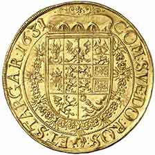 Jeden z nejlépe dochovaných exemplářů v soukromých sbírkách na světě. Stav: téměř 0/0, nepatrně decentrovaný. Minci jsme vydražili v Gorny & Mosch, odhad dnešní ceny (2014) je cca 230 000 €.